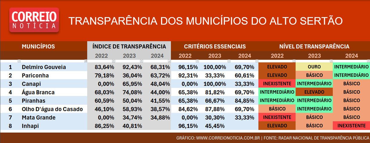 Dados levantados entre maio e novembro do ano passado são do Radar Nacional de Transparência Pública. Foto: Chat GPT