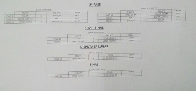 A segunda fase do campeonato irá iniciar no próximo dia 19, sexta-feira.