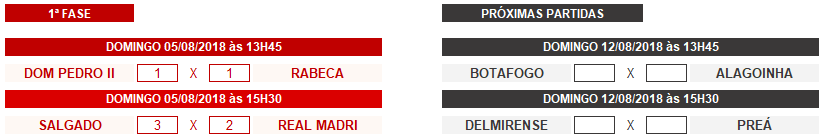Partidas, realizadas na tarde deste domingo (5), foram válidas pela primeira rodada do do grupo C, do Campeonato Delmirense de Futebol Amador 2018