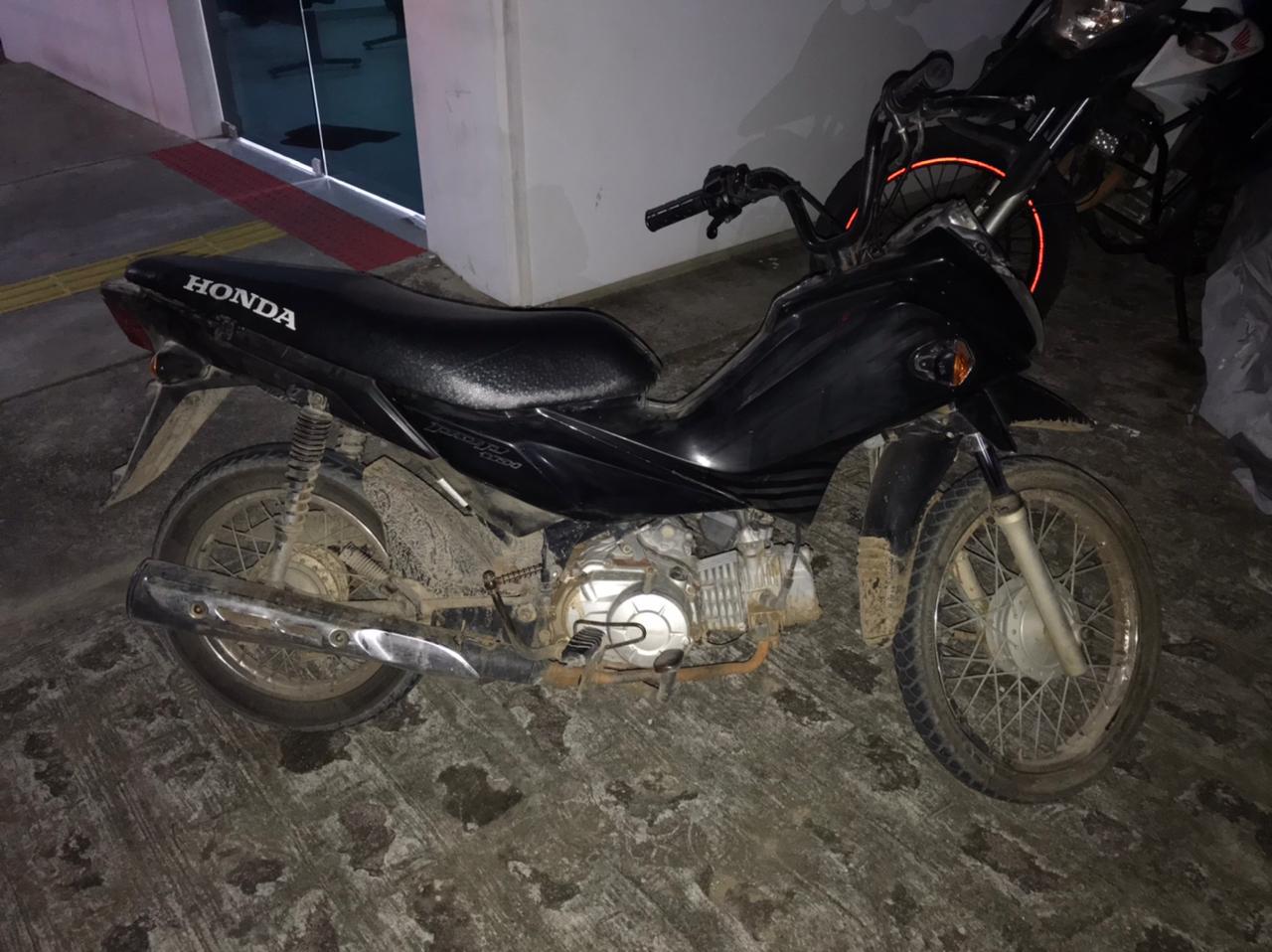 Com ele os policiais apreenderam a moto utilizada no crime, uma Honda Pop 110, de cor preta, com queixa de roubo ou furto; os três telefones roubados, um revólver calibre .32, com seis munições, sendo cinco intactas e uma pinada; um relógio e a quantia em dinheiro no valor de R$ 1.855,00.