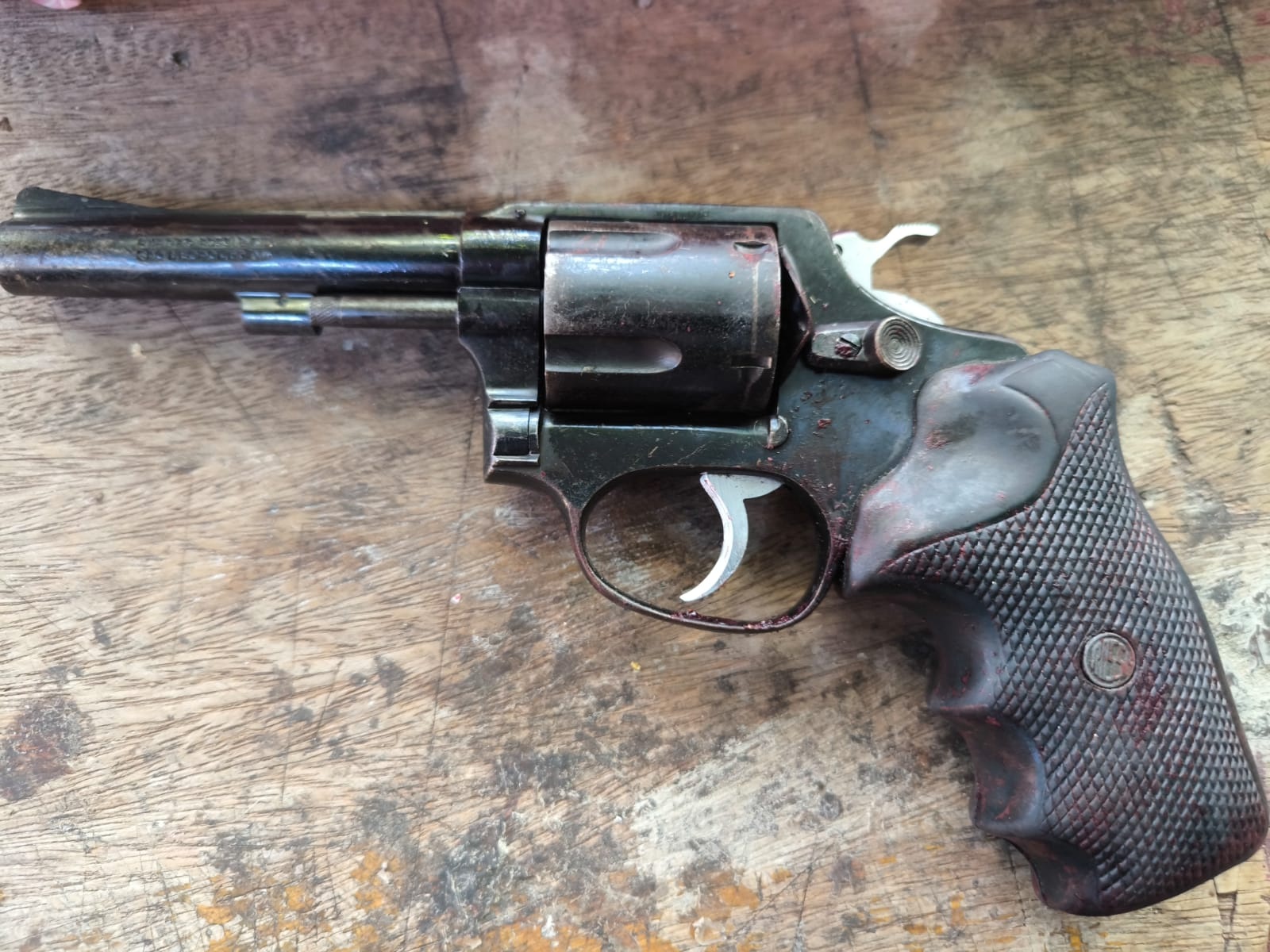 Na operação, os policiais apreenderam um revólver calibre .38, com três estojos deflagrados e duas munições intactas no tambor. No quarto da residência, foram encontradas outras cinco munições do mesmo calibre.