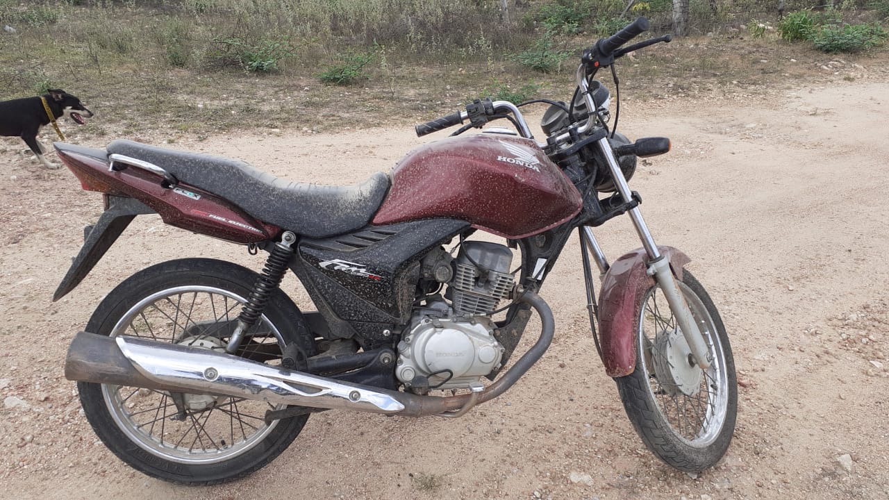 Os militares fizeram buscas pela localidade e encontraram uma moto sem placa de identificação, jogada no chão. Tratava-se da mesma motocicleta que tinha sido usada para o roubo.