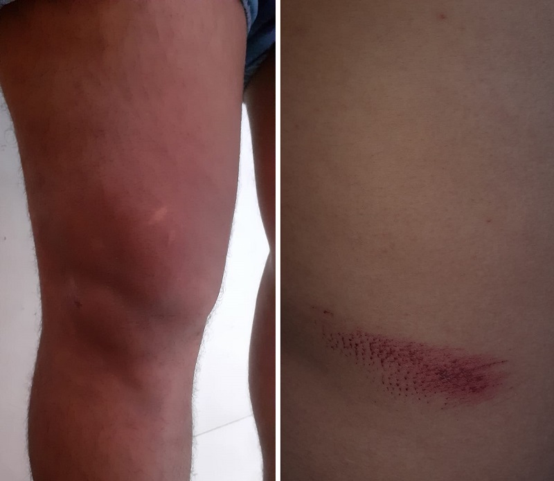 “Lembro que deixei todos na mesa e fui falar com um primo em um restaurante ao lado e, enquanto eu estava lá, o Cleiton – não sei como e nem por que – foi para a mesa onde estava meu marido e o casal que nos acompanhava e ficou conversando com eles [o casal]. Quando eu retornei para a mesa, lembro que Cleiton só falava com o casal e meu marido ficava calado e sem nenhuma explicação comecei uma discussão com ele [Cleiton]. Eu não lembro o motivo da discussão. Estava muito embriagada e me alterei bastante. Foi aí que o casal que nos acompanhava decidiu pagar a conta para que todos nós fôssemos embora. Só lembro que quando já íamos saindo o Cleiton e os amigos me derrubaram e meu marido, que, por causa da bebida, tinha perdido a coordenação motora, e nos espancaram bastante. Eram chutes e socos em todos os lugares e eles ainda deslocaram uma das pernas dele. Foram minutos de terror”, recorda a vítima.