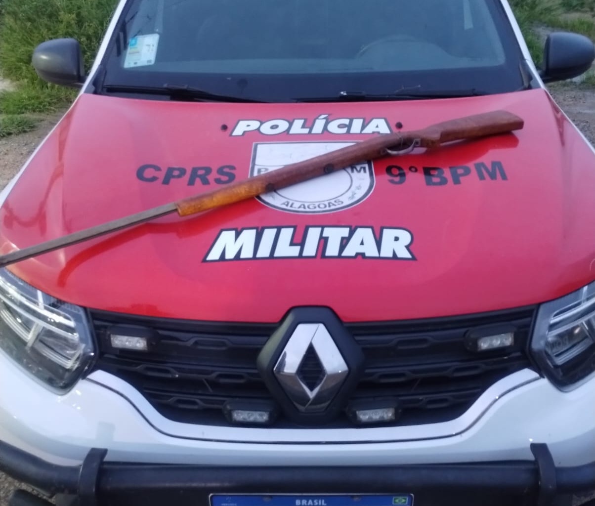 Suspeito admitiu tiro acidental com espingarda artesanal e foi autuado em flagrante. Foto: Cortesia/9º-BPM