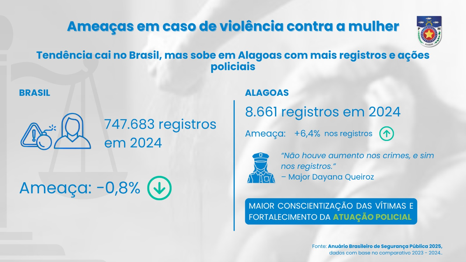 É semelhante à forma do 3º BPM tratar o policiamento voltado ao combate do crime de ameaça em Arapiraca. Nas palavras do tenente-coronel Carlos Alberto de Albuquerque, a atuação coordenada entre a inteligência e as guarnições ostensivas permite identificar padrões de comportamento, mapear áreas de alta incidência, localizar infratores e neutralizar riscos antes que evoluam para atos ilícitos de maior gravidade.