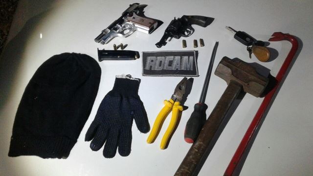 Os homens ocupavam um carro Gol, de cor branca e placa ATN-5174/Aracaju-SE, quando foram abordados por uma guarnição da Ronda Ostensiva com Apoio de Motocicletas (Rocam), que suspeitou da atitude deles. Durante revista no veículo, os militares encontraram uma pistola calibre 380 e um revólver calibre 32, todos municiados, além de uma balaclava (toca ninja), luvas e outras ferramentas comumente utilizadas em roubo a banco.
