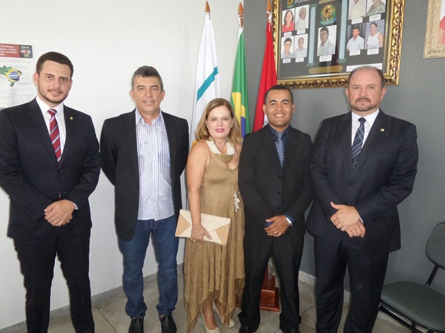 Ex-prefeito Avânio Feitosa, vice-prefeita Márcia Melo e prefeito Val. Foto: Fagno Pinto/Cortesia