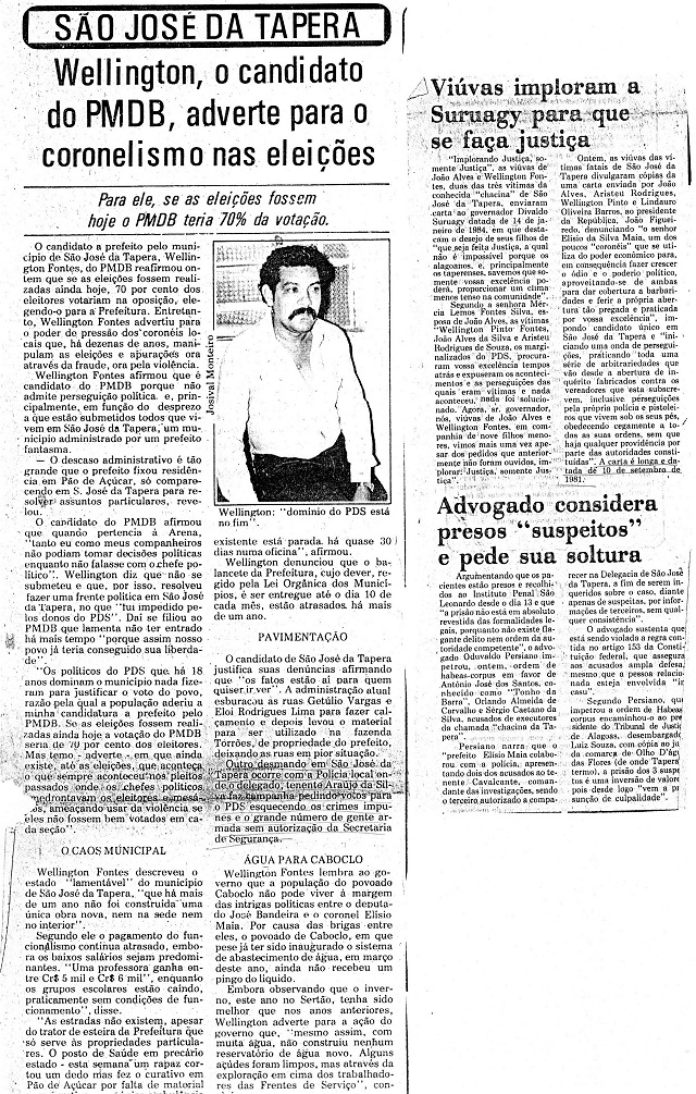 Jornal da década de 1980 mostra entrevista com Wellington Fontes. Foto: Reprodução/Arquivo