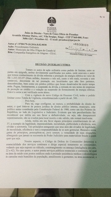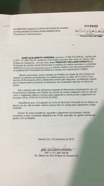 José Gualberto Pereira, que foi prefeito de Olho D’água do Casado, disse que Eletrobras Distribuição Alagoas cobrou tarifa de prédios que não pertencem à prefeitura e de outros que já estavam desativados