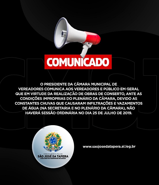 Não teve sessão nesta quinta-feira (25) devido à realização de serviços de reparos no prédio; nota divulgada pela Câmara informa que plenário estava com “condições impróprias”