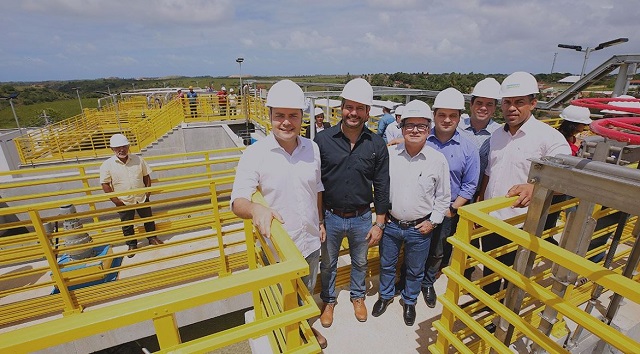 | Padre Eraldo, ao fundo e à esquerda da imagem, esteve com o governador em visita a estação de esgoto, em Maceió, no começo da semana (Foto: Agência Alagoas) |